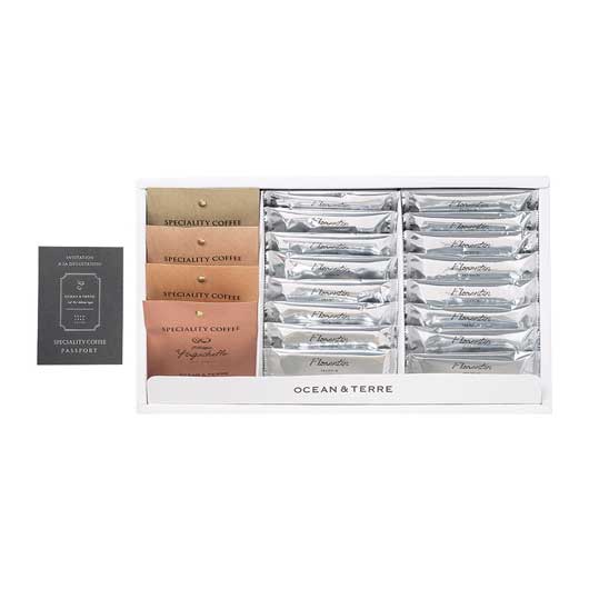 ●内容:ドリップ珈琲(ミャンマー スターマウンテン、ブラジル ショコラ、コスタリカ ハニー、エチオピア イルガチェフェ)4種(各8g×1)、フロランタン12g×16、パスポート付き(スペシャルティコーヒー説明書)