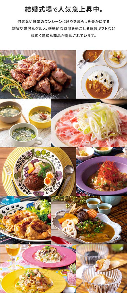 暮らしを豊かにする雑貨や贅沢なグルメ、感動的な時間を過ごせる体験ギフトなど幅広く豊富な商品が掲載されています。