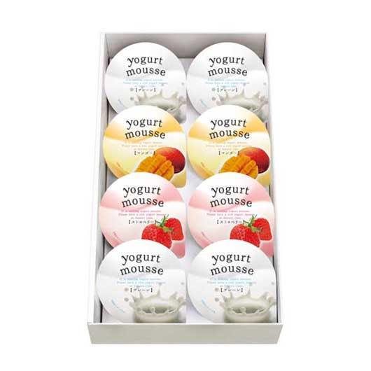 ●内容:ヨーグルトムースプレーン 52g×4個、ヨーグルトムースマンゴー 52g×2個、ヨーグルトムースストロベリー 52g×2個