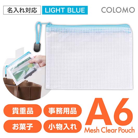 ●商品名:カラモ 両面メッシュクリアポーチ A6 ライトブルー
