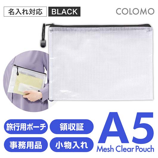●カラモ 両面メッシュクリアポーチ A5 ブラック ×1個入り