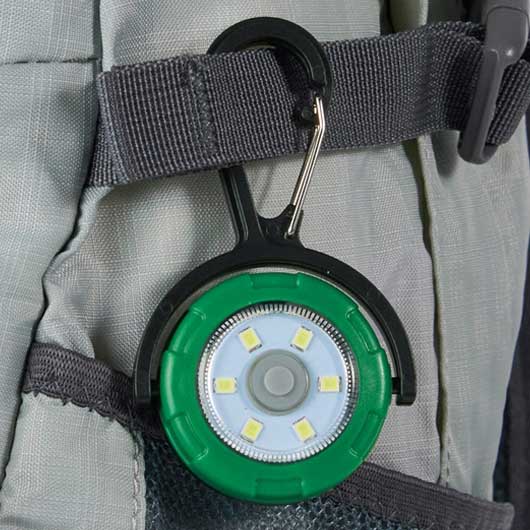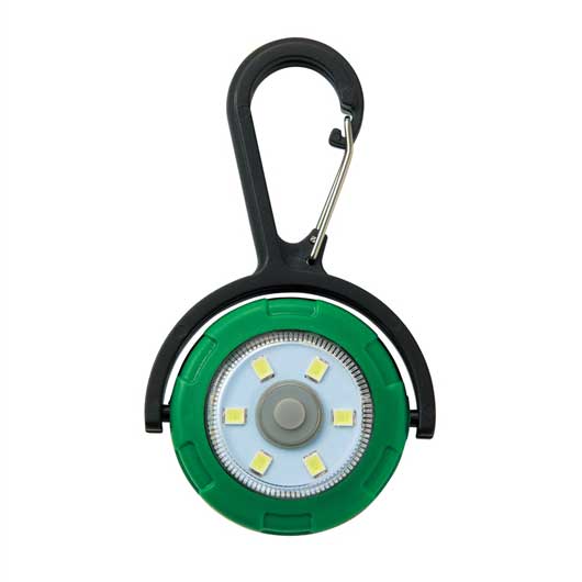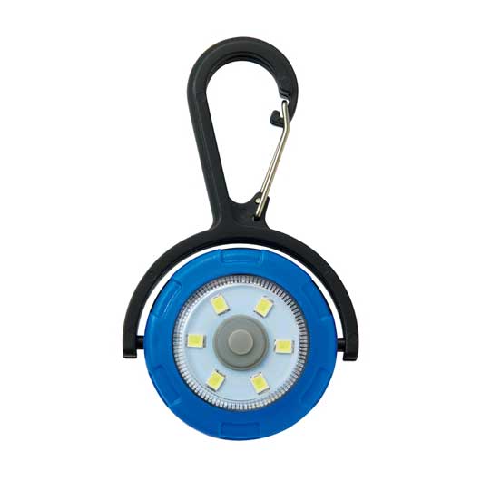 レジャーや防災シーンだけでなくお子様の通学カバンにも付けておきたい小型のライト。盤面が360°回転するのでフレキシブルに照らせます。ボタンを押すたびに3段階で切り替え可能(点灯強→点灯弱→点滅→消灯)。