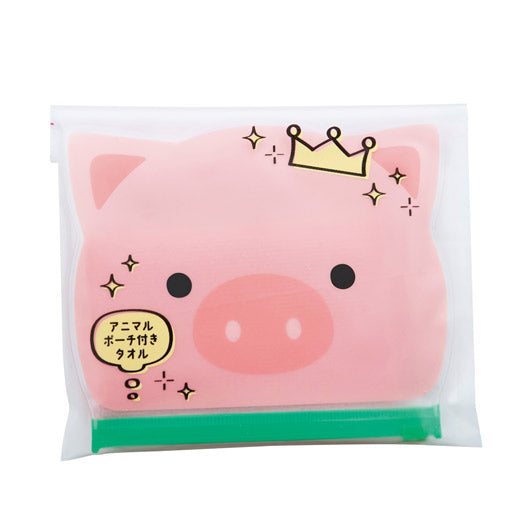 タオルが濡れても大丈夫!キュートなアニマルのPVCポーチ付きですから。