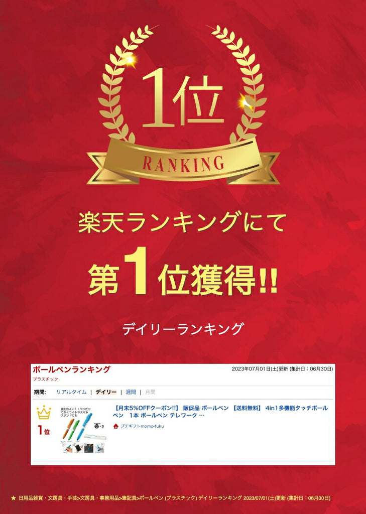 ボールペン、タッチペン、ペンライト、スマホスタンド。1本で4つの機能。便利な多機能ボールペン!