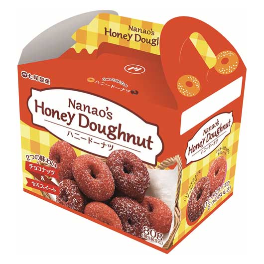 チョコ風味のドーナツに、ココナッツをまぶした「チョコナッツ」と、蜜でコーティングしたドーナツにグラニュー糖をまぶした「セミスイート」の二種類の味が楽しめる箱入りアソートです。持ち手があるので持ち運びしやすく、ちょっとしたプレゼントにも最適です。食べやすい個包装タイプです。