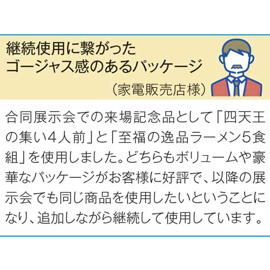 醤油・味噌ラーメンと魚介醤油・担々麺つけ麺の4種類。まさに「麺の極」と言えるラーメンとつけ麺のセット。一人暮らしにもおすすめ。購入者特典や会員特典にも最適です。いつでも贈って喜ばれるラーメンセットですが、「手に取り食べてみたくなる」パッケージも魅力です。