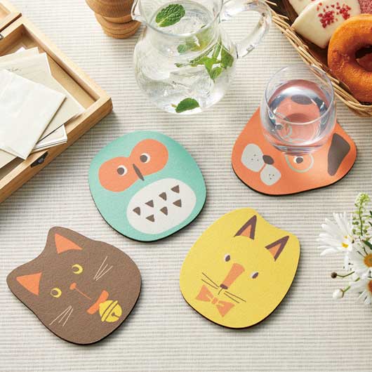 珪藻土パウダーを配合した特殊生地を使用。 高い吸水性と速乾性に優れた かわいいアニマルフェイスのコースターです。
