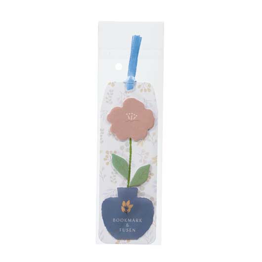 メモ書き用の花型、印付け用の葉っぱ型、 2種の付箋がセットの押し花風のしおり付箋です。 花に合わせた花瓶デザインのパッケージ入り。