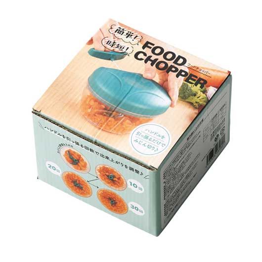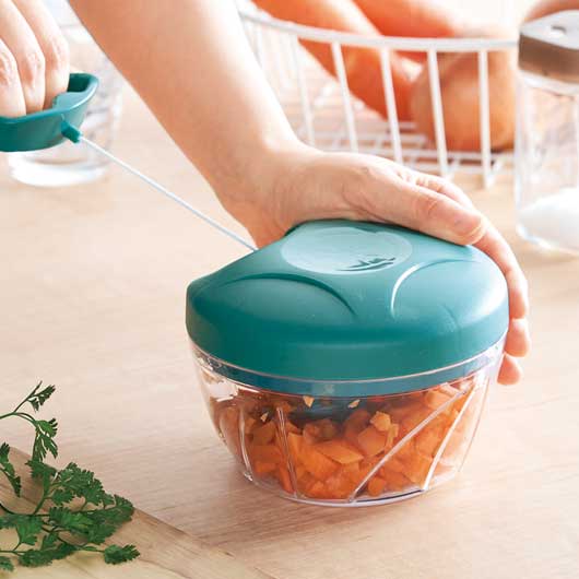 いろんな食材をあっという間にみじん切り、 食材を入れハンドルを引っ張るだけで出来上がり! 手軽で家事の時短になる便利なキッチンアイテム。