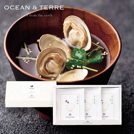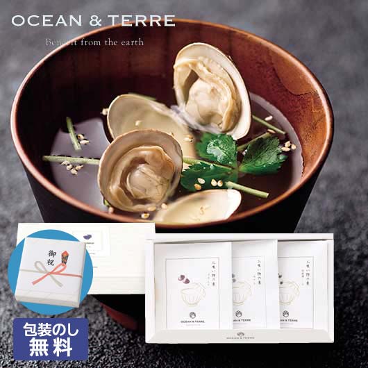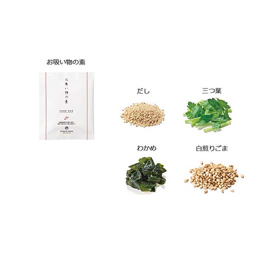 ●内容:お吸い物の素2.9g×3、はまぐり2個×1、あさり30g×1、宍道湖しじみ30g×1、白煎りごま1g×3