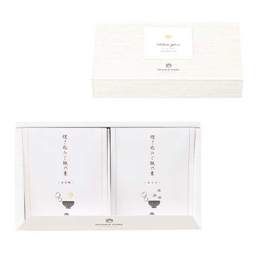 ●内容:炊き込みご飯の素(2合用)38g×2、金目鯛1切×1、あさり30g×1、三つ葉0.2g×2、白煎りごま1g×2