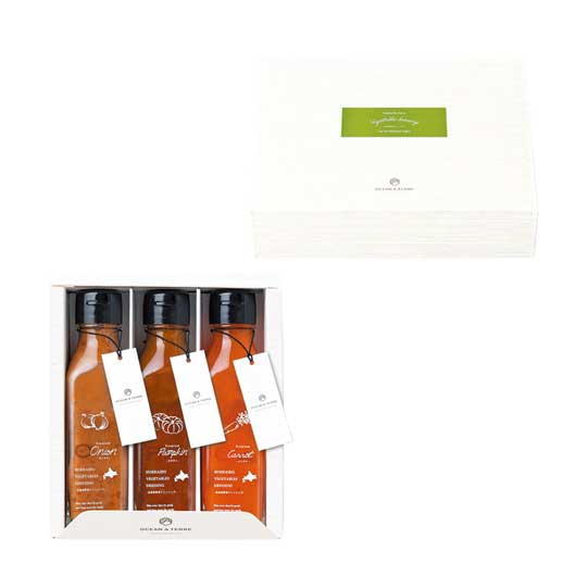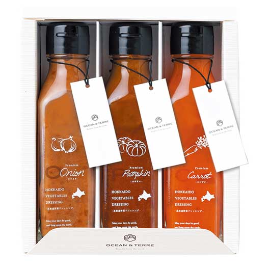 ●内容:野菜ドレッシングオニオン120ml×1、野菜ドレッシングパンプキン120ml×1、野菜ドレッシングキャロット120ml×1