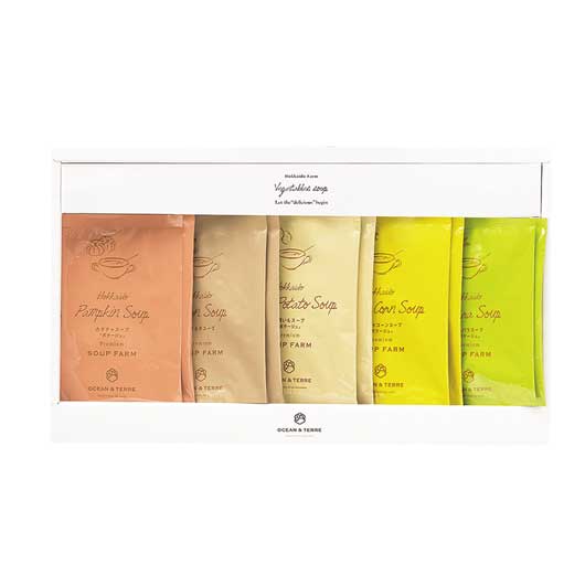 ●内容:北海道産かぼちゃス-プ16.5g×2、北海道産玉ねぎス-プ7g×2、北海道産男爵いもス-プ20g×2、北海道産スイートコーンス-プ16.5g×2、北海道産アスパラス-プ16.5g×2