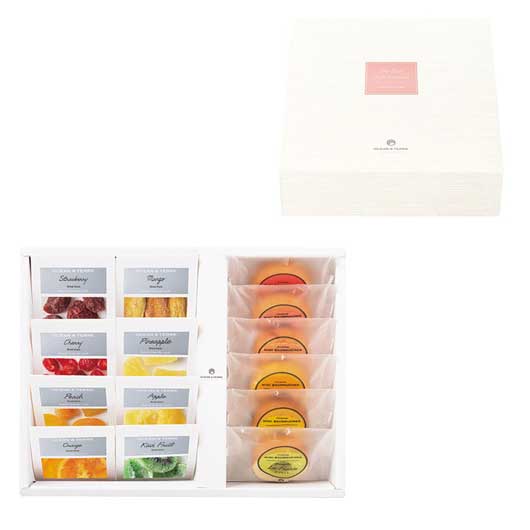 ●内容:ストロベリー20g×1、チェリー20g×1、ピーチ20g×1、オレンジ20g×1、マンゴー20g×1、パイン20g×1、アップル20g×1、キウイフルーツ20g×1、栃木県産 とちおとめ苺バーム×1、山形県産 さくらんぼバーム×1、山梨県産 白桃バーム×1、北海道産 赤肉メロンバーム×1、沖縄県産 マンゴーバーム×1、山形県産 ラ・フランスバーム×1
