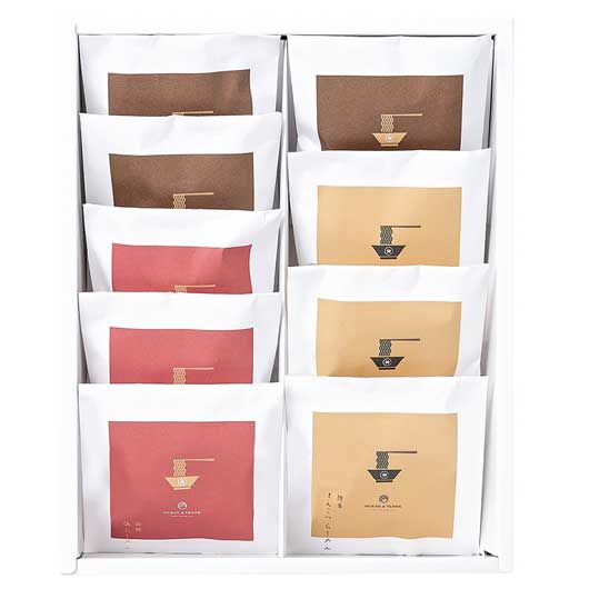 ●内容:函館らーめん丸太麺100g×3、札幌らーめん丸太麺100g×3、博多らーめん丸細麺100g×3、函館塩らーめんつゆ44g×3、札幌みそらーめんつゆ40g×3、博多とんこつらーめんつゆ42g×3