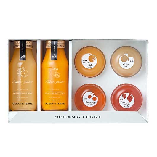●内容:アップルジュース180ml×1、ミカンジュース180ml×1、北海道 赤肉メロンゼリー72g×1、山形県 さくらんぼゼリー72g×1、山梨県 白桃ゼリー72g×1、福岡県 あまおう苺ゼリー72g×1