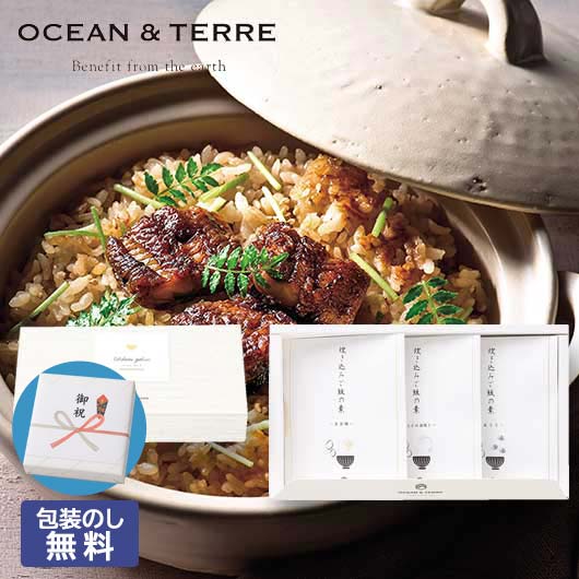 ●内容:炊き込みご飯の素(2合用)38g×3、金目鯛1切×1、うなぎの蒲焼き13g×1、あさり30g×1、三つ葉0.2g×3、白煎りごま1g×3