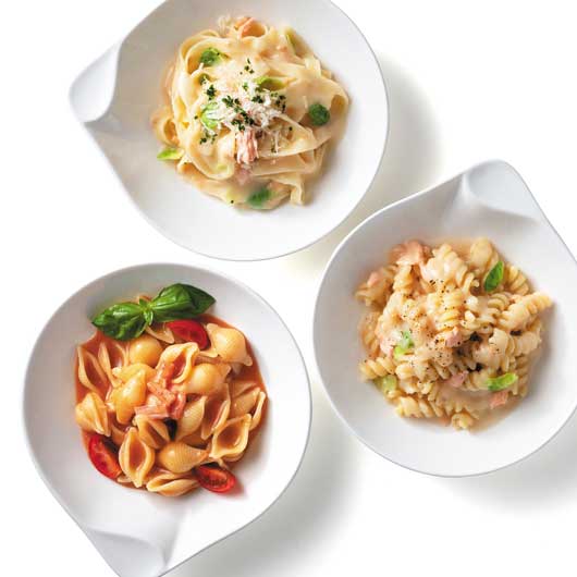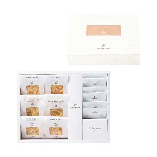●内容:北海道産サケとキャベツクリームパスタソース17.2g×4、北海道産トマトとズワイガニクリームパスタソース16g×2、アビッシーネ・リガーテ70g×2、ロングパスタ タリアテッレ50g×2、フジッリ・ブロンズ70g×2