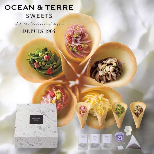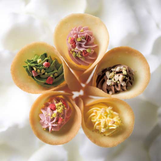 カラフルなクリームをラングドシャ生地でくるりと巻いた小さな花束。ストロベリー・バナナ・抹茶・チョコレートの4つのフレーバー。一つ一つに小さな幸せを込めた贈り物です。~エディブルフラワーとは…~ Edible(食べられる)Flower(花)のことです。カタログ掲載商品のエディブルフラワーは、安全に栽培された花を乾燥させ、使用しました。安心して食べられます。