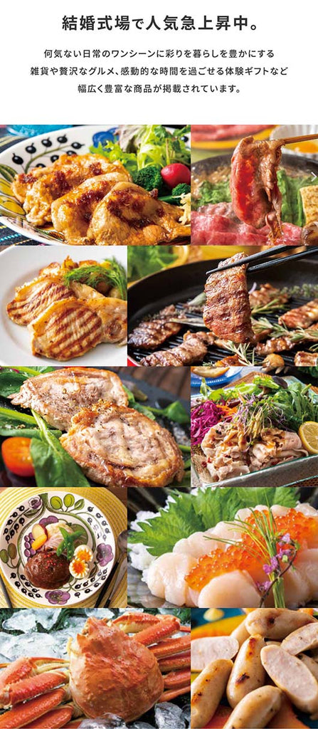 暮らしを豊かにする雑貨や贅沢なグルメ、感動的な時間を過ごせる体験ギフトなど幅広く豊富な商品が掲載されています。