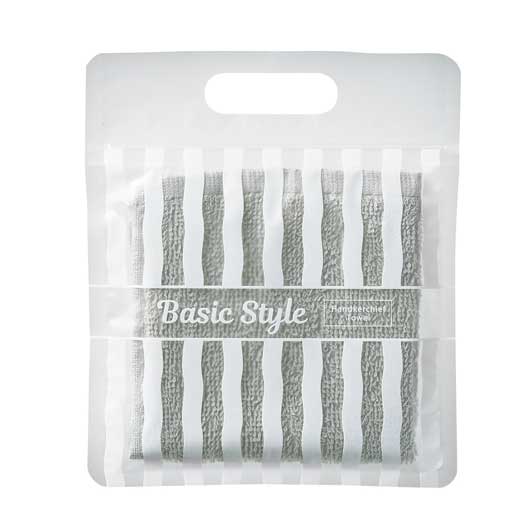 コットン100%のベーシックなハンカチタオル。 シックなカラーリングで大人っぽい印象が特徴。 持ち手付きのパッケージで渡しやすく便利です。