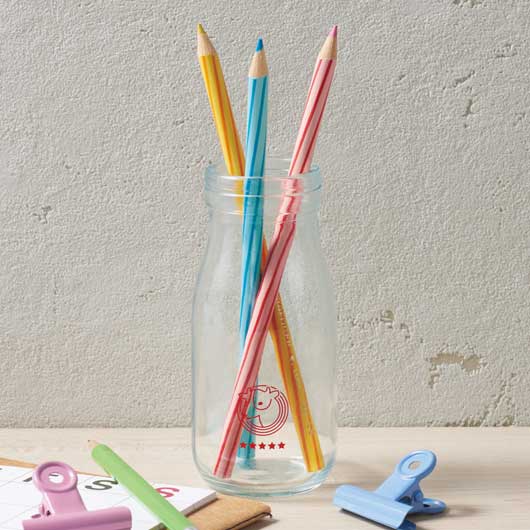 瓶入り牛乳をイメージした楽しいハンカチタオル。 懐かしさを感じるレトロ風のデザインがポイント。 瓶はペン立てや小物入れとして使用できます。