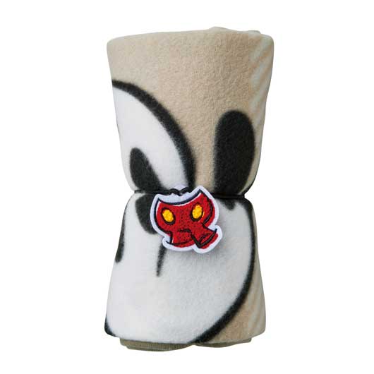 ワッペン付バンドで巻いた収納時もかわいい、 寒い冬におすすめのブランケット。 大柄のキャラクター印刷が目を引く商品です。