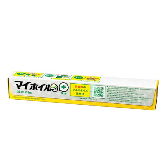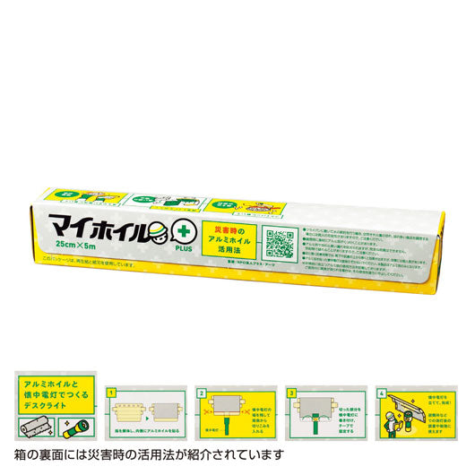 災害時に役立つ活用法や暑さ対策などが パッケージに記載されている便利な アルミホイルです。
