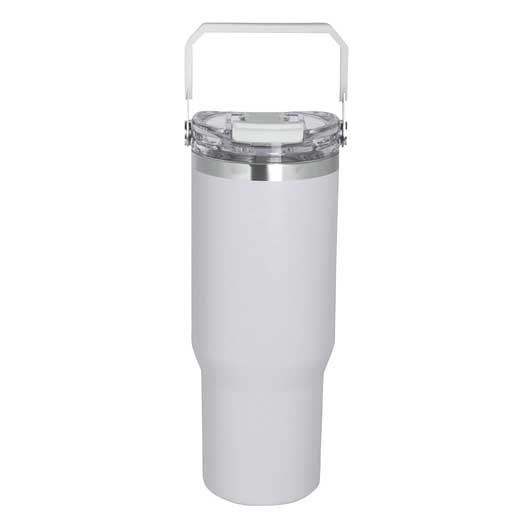 車のドリンクホルダーにセットができ、持ち運びも 便利なハンドル付きの大容量タンブラーです。 ストローと直飲みができる2WAYタイプです。