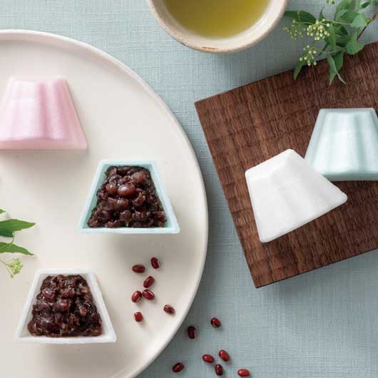 可愛らしい富士山の形をした最中を自分で作って味わえるセットです。日本が誇る絶景の富士山を思い浮かべながら。