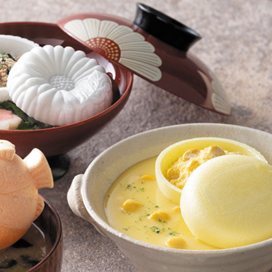 見た目だけでなく食感も楽しめる最中の詰め合わせ。最中は国産100%の最中種から作られており、だしや野菜スープにも国内素材を使用。