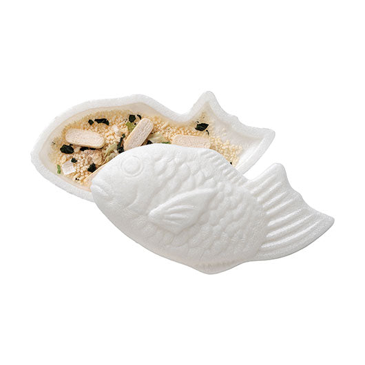 2つの味が楽しめる紅白鯛のお吸い物最中。鯛は長寿の象徴と言われ、縁起が良いとされています。