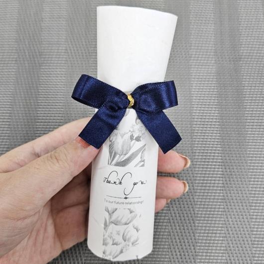 モノトーンの花柄パッケージにネイビーのリボンで落ち着いた色合いのエレガントなプチギフトです。