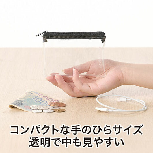 キャッシュレス時代にぴったりのミニウォレットポーチです。 コンパクトな約9×12cmサイズで、小銭やカードを入れてお財布代わりに使えるほか、コスメやお菓子、ケーブル等の小物ポーチとしても便利。 PVC素材なので軽く、中身が見えて使いやすいのもポイントです。 推し活アイテムとしてもおすすめ。 トレカケースがすっぽり入るサイズ感で、デコレーションしたカードの保護や持ち運びにも役立ちます。 カラーは人気の推し色7色をラインナップ。 ブラックはシンプルに使いたい方や、男女問わず持ちやすい万能カラーです。 名入れ印刷にも対応しており、長3封筒に入るサイズのため、DMに同封して配布することも可能です。 透明PVC素材なのでロゴが映え、ファンクラブ会員向けのノベルティやコンサートグッズ、物販アイテムとしても活躍します。 実用性と楽しさを兼ね備え、幅広い世代に喜ばれるポーチです。