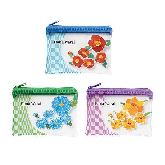 上品な和柄が魅力の「はなわらい ミニウォレットポーチ」です。 椿・菊・水仙の3アソートで、どこか懐かしいレトロ感のあるデザイン。 若い世代には新鮮に映り、海外のお客さまにも喜ばれる日本らしい雰囲気が特徴です。 サイズはコンパクトな約9×12cm。 小銭やカードを入れてお財布代わりに使えるほか、コスメやお菓子、ケーブル等小物ポーチとしても便利。 PVC素材なので軽く、中身が見えて使いやすいのもポイントです。 キャッシュレス化が進む今、必要最低限のお金やカードをスマートに持ち歩きたい方に最適。 普段使いはもちろん、旅行やお出かけのお供にもぴったりです。 名入れ印刷にも対応しており、長3封筒に入るサイズのため、DMに同封して配布することも可能です。 上品さと実用性を兼ね備えており、年代を問わず、海外からのお客様にも喜ばれるノベルティです。