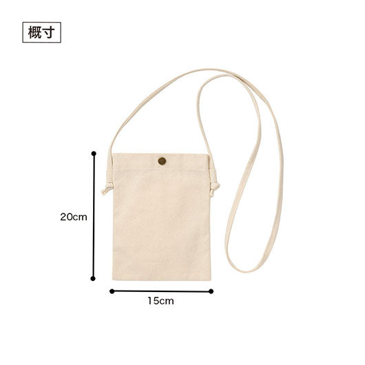 しっかりとした厚手コットンを使用したスマホサコッシュです。 10オンスの丈夫なコットン素材で、スマホや小物を安心して持ち歩けます。 ショルダーの長さは調整可能。 真鍮ボタンを使用しており、見た目にもワンランク上の仕上がりになっています。 ナチュラルな風合いで、幅広いシーンで使いやすいのも魅力です。 ロゴやキャラクターを印刷するだけでオリジナル感が生まれ、販促効果も長く続きます。 携帯ショップや商業施設、アパレルやイベント業界等、幅広いシーンでご活用いただけます。 実用性とデザイン性を兼ね備えており、ノベルティやスタッフ用アイテムとしておすすめです。