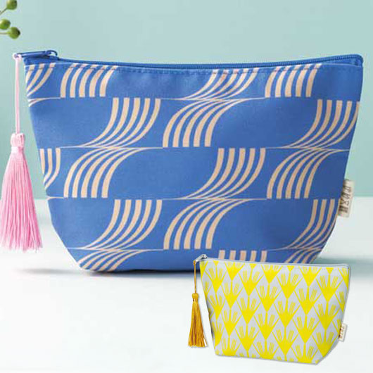 京都で生まれた伝統柄「伊砂文様」の版権商品。 タッセルがおしゃれな和モダンポーチ。 マチ有りで見た目以上の収納力があります。