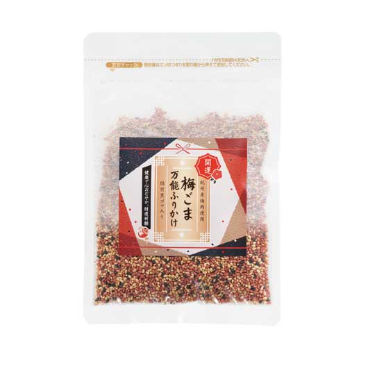 紀州産の梅肉を使用し、梅の味と直火焙煎した 白胡麻と黒胡麻が調和しているバランスがとれた 万能ふりかけです。