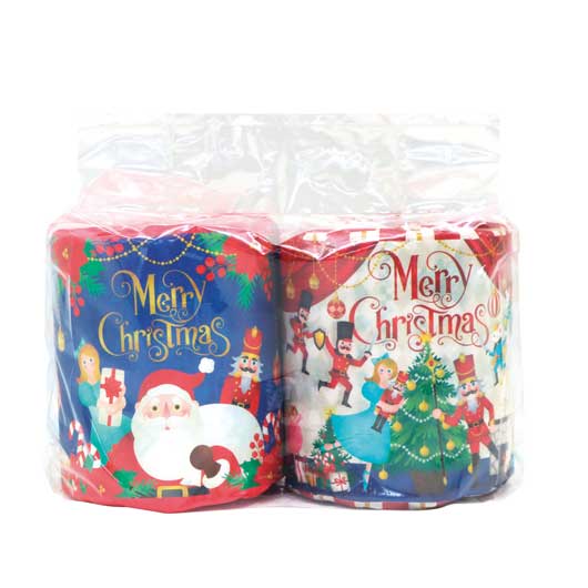 サンタクロースデザインのパッケージで、 イベントも華やぐトイレットロールの2個セット。 ティッシュにも柄があしらわれています。