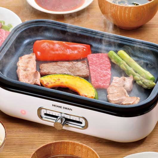 コンパクトで場所を取らず簡単調理ができ、更に 温度調整機能付きで調理から保温まで可能です。 着脱式でプレートの丸洗いも可能です。