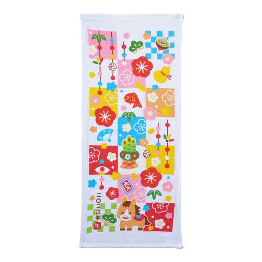 名刺ポケット付きの格子柄干支タオルで、 新年の挨拶品として喜ばれる商品です。