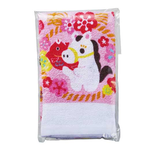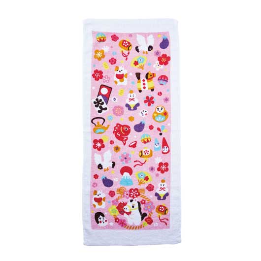 お正月を彩る晴れやかなデザインが 細かなところまでプリントされている お年賀タオルです。