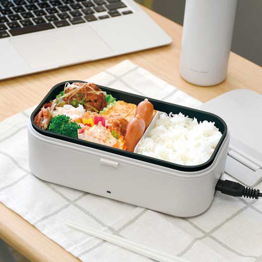 電気で温められるランチボックス。 ランチの前に電源ONで温かいお弁当が楽しめます。 加熱時間は10~15分を目安に加熱してください。