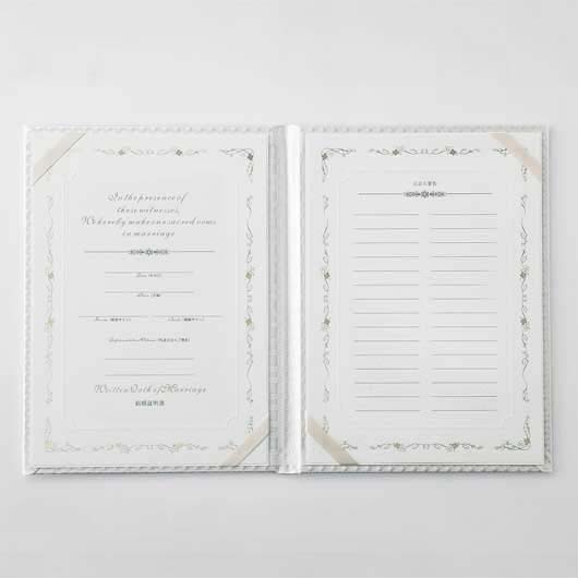 証明書1枚入り、立会人署名記入紙1枚入り(30名様分)用紙取り外し可(リボン2ヶ所とめ) 材質:合皮、紙、ポルエステル、スワロフスキー製ラインストーン付 箱サイズ28x21.5x2cm
