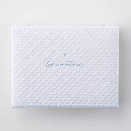 ゲストカード60名様分、用紙取り外し可(2穴式 1枚で1名)、材質:紙・スワロフスキー製ラインストーン付・金具付(鉄)、箱サイズ15×18.5×4.5cm
