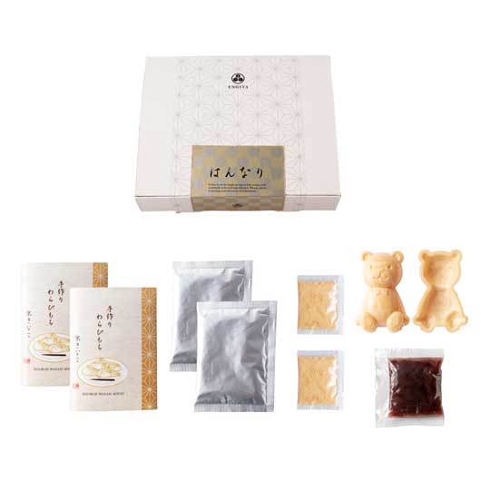 手作りわらび餅粉30g×2、京きなこ8g×2、くま型最中×1、餡子20g×1