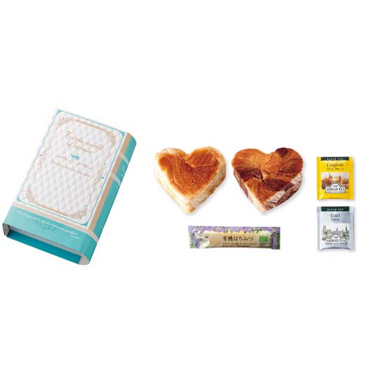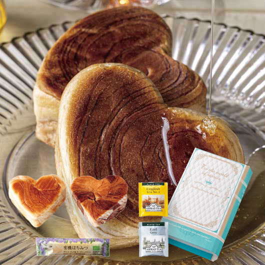 ハートデニッシュ(メイプル・チョコ)×各1、有機はちみつ8g×1、紅茶(イングリッシュティNO.1・アールグレイ)×各1
