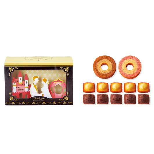 ミニバウムクーヘン(キャラメル&ミルク・ストロベリー&ミルク)×各1、ミニフィナンシェ(プレーン・チョコ)×各5