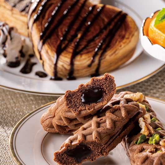 ハートデニッシュ(メイプル・チョコ)×各1、チョコスティックワッフル×2