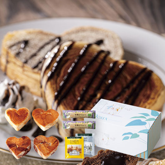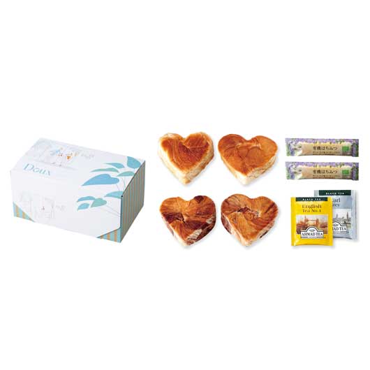 ハートデニッシュ(メイプル・チョコ)×各2、有機はちみつ8g×2、紅茶(イングリッシュティNO.1・アールグレイ)×各1
